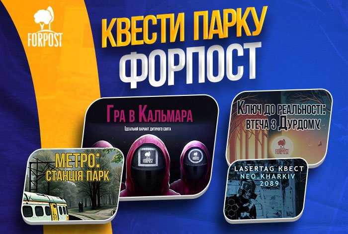 Парк Форпост — це найбільший у Харкові простір активного відпочинку з дев’ятьма ігровими майданчиками для пейнтболу, лазертагу та вотертагу.